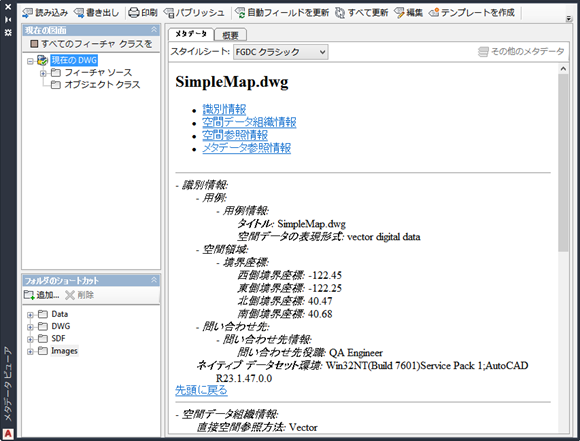ISO (国際標準化機構) (19115 および 19139)や FGDC (連邦地理データ委員会)などの標準形式でメタデータをパブリッシュします。組織内の他のメンバーや、外部の請負業者および監督機関とデータを共有します。