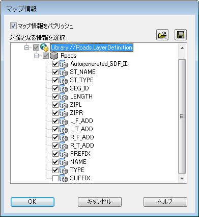 - [マップ情報]ダイアログ ボックスで[マップ情報をパブリッシュ]を選択します。