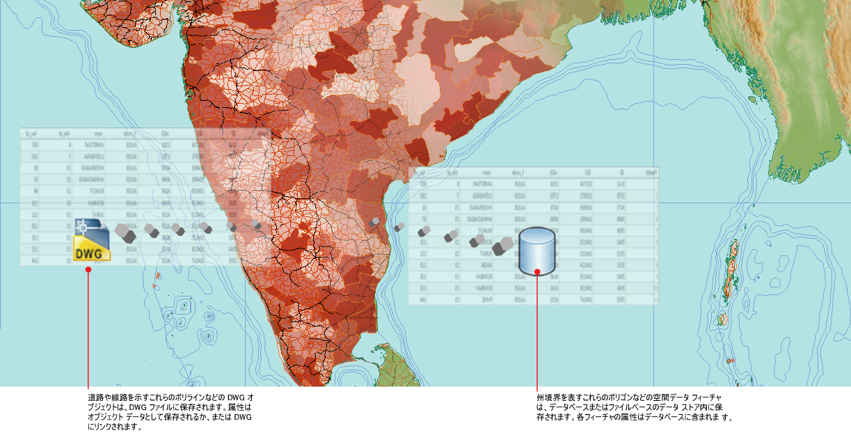 図面ファイルのデータと空間データ ストアのデータを組み合わせます。