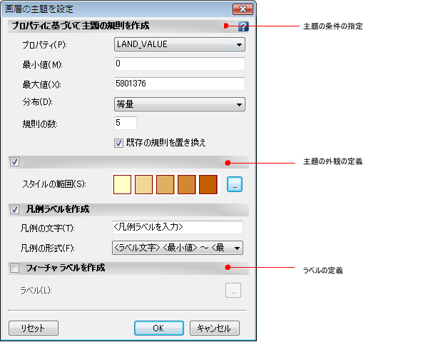 [画層の主題を設定]ダイアログ ボックスで主題を設定します。