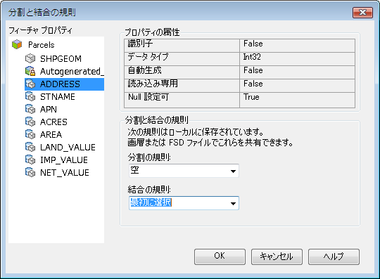 | [プロパティ]: | [分割規則] | [結合の規則] |