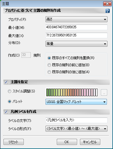 - [主題]ダイアログ ボックスの[主題を指定]で、[パレット]をクリックし、[USGS 全国マップ パレット]を選択します。