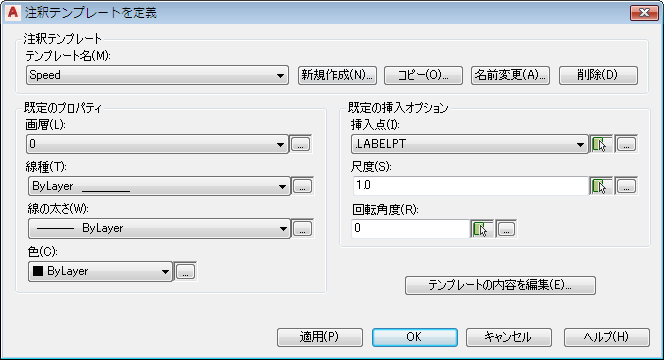 [注釈テンプレートを定義]ダイアログ ボックスが表示されます。