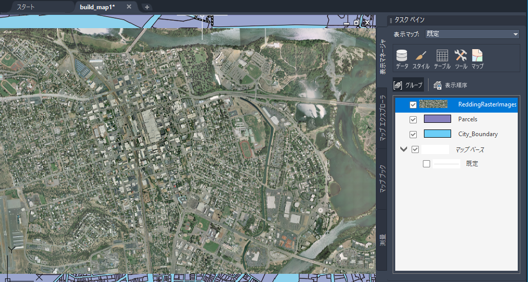 ピクセルで形成される写真やその他のイメージを、ラスター イメージといいます。線分と円弧で形成されるイメージをベクトル イメージといいます。たとえば、航空写真を読み込んで、マップのオブジェクトの背面に表示することができます。ラスター イメージ内の現実の要素がマップのジオメトリと重なるため、視覚的に把握しやすくなります。