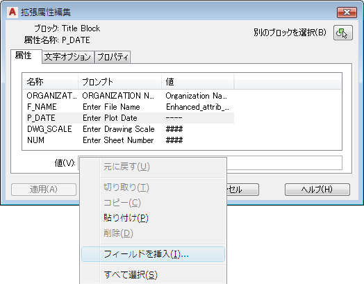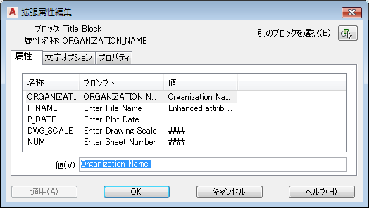 - タイトル ブロックのフレームをダブルクリックして、[拡張属性編集]を表示します。