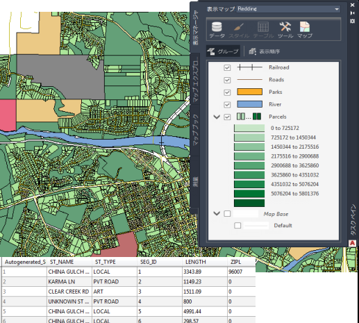マップは DWG 形式で保存されています。AutoCAD 図面を直接開くか、図面をアタッチして必要なオブジェクトのみをクエリーします。