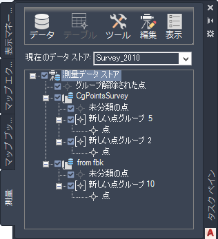 [測量]タブを使用して、測量データを読み込み、編成します。