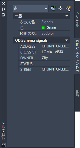 - [プロパティ]パレットで、[オブジェクト クラス]タブをクリックし、プロパティを検査します。