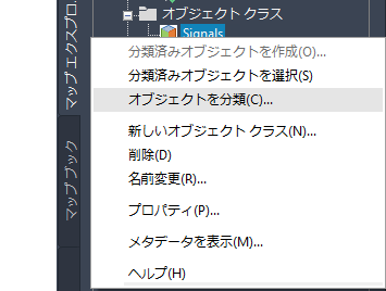 - [タスク ペイン]の[マップ エクスプローラ]で Signals オブジェクト クラスを右クリックし、[オブジェクトを分類]をクリックします。