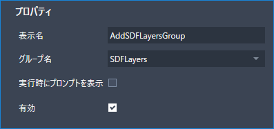 [グループを追加]アクティビティは、新しい画層を保持するグループを作成します。[LoopAddLayers]アクティビティによって画層がグループに追加されるため、ループ アクティビティが開始される前に、グループを作成する必要があります。