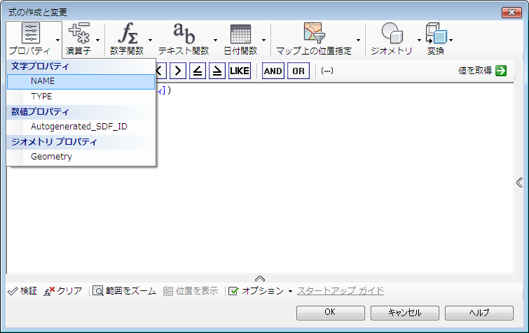 - [式の作成と変更]ウィンドウで、現在の式を削除します。