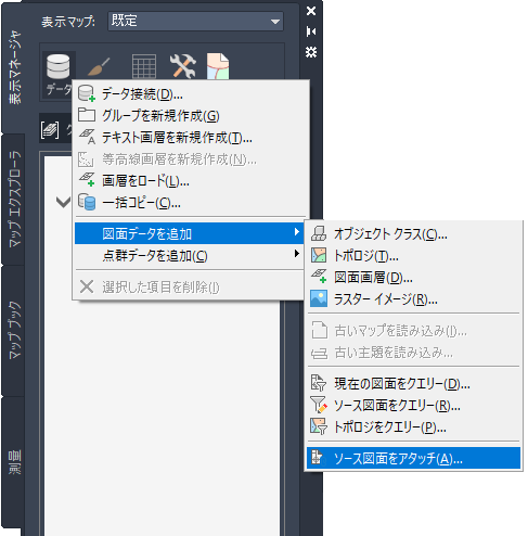 [表示マネージャ]を使用して AutoCAD 図面ファイルをアタッチすることができます。