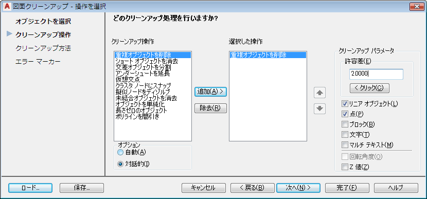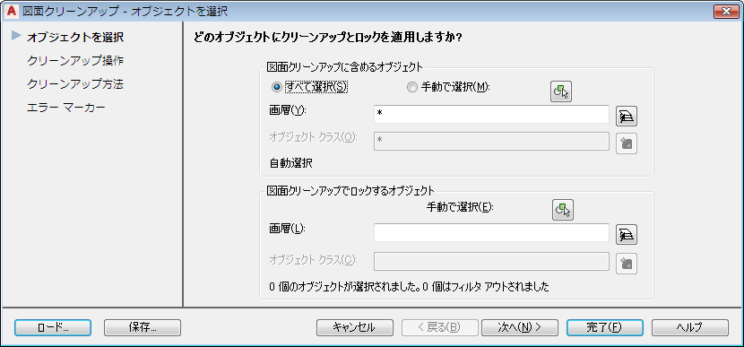クリーンアップ操作に含めるオブジェクトをすべて指定します。
