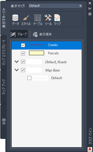 - [Creeks]画層を選択して[スタイル]をクリックします。