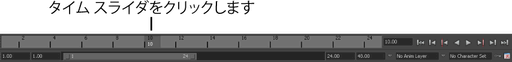 - キーを設定するタイム スライダ(Time Slider)のフレーム番号をクリックします。
