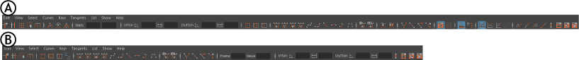 グラフ エディタ(Graph Editor)ツールバー: (A)既定、(B)簡易