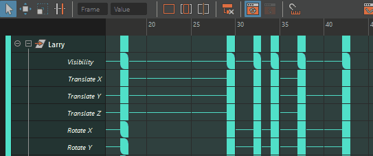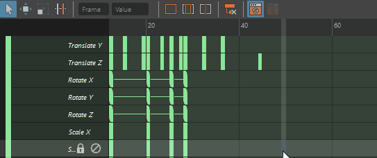 ![]() ドープシート(Dope Sheet)のツールバーにあるキーの挿入ツール(Insert Keys Tool) キーの挿入ツール(Insert Keys Tool) |