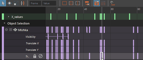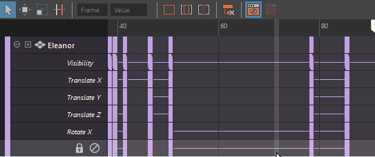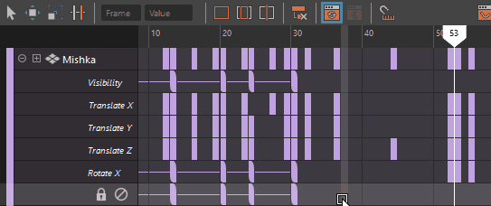 | サブフレームを表示する | サブフレーム(星印付き)のキーにカーソルを合わせると、サブフレームの時間と値が表示されます。