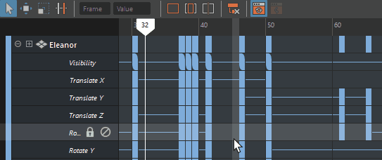 ![]() キーを選択し、ドープシート(Dope Sheet)のツールバーにある移動ツール(Move Tool) 移動ツール(Move Tool) |