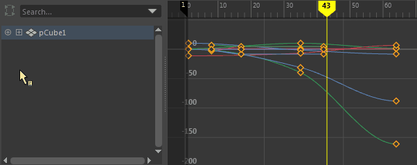 グラフ エディタ(Graph Editor)またはチャネル ボックス(Channel Box)を使用してミュートされたアニメーションを持つアトリビュートのミュート フラグの表示を切り替えます。ミュート フラグは、左側にあるグラフ エディタ(Graph Editor)のツリー ビューにのみ表示されます。