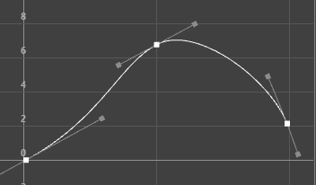 アウト接線(Out Tangent)のみに接線タイプを指定できます。アウト接線(Out Tangent)では、キーの後にくるカーブ セグメントのタイプを定義できます。選択した接線の角度とウェイトを変更するには、アウト接線(Out Tangent)の角度(Angle)