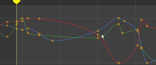 これらのキーに接線タイプをクランプ(固定)設定することで、間接のずれは補正され、各接線はリニアとスプラインの組み合わせになります。