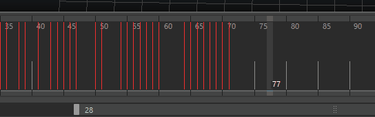 - タイム スライダ(Time Slider)で[Shift]キーを押しながらキーの範囲をドラッグします。