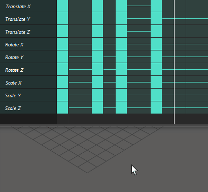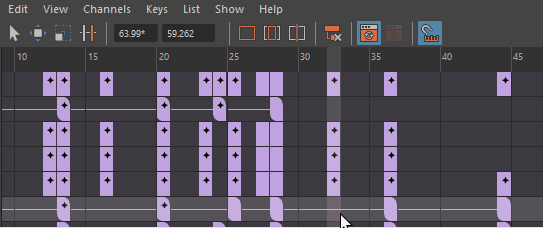 ドープシート(Dope Sheet)エディタでキーのグループを編集して、時間の範囲とキーをコピー、カット、ペースト、スケール、移動、またはミュートします。