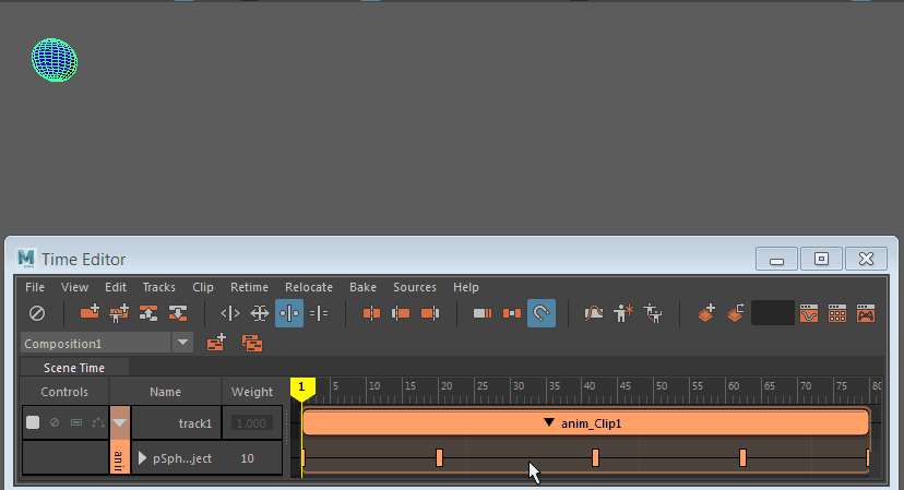 タイム エディタ(Time Editor)でクリップを削除した場合、そのアニメーションは消えますが、元のアニメーションはシーン内に残っています。