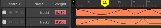 注: クリップのアニメーションにウェイトを付けるには、複数のトラックにアニメーション クリップが存在している必要があります。