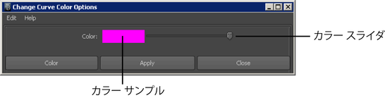カーブ カラーの変更(Change Curve Color)操作を解除し、カーブ カラーの変更オプション(Change Curve Color Options)ウィンドウを閉じます。