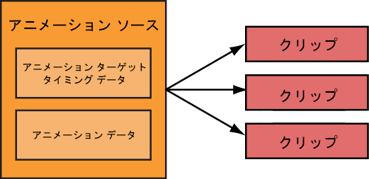 注: 複数のクリップで同じアニメーション ソースを共有できます。