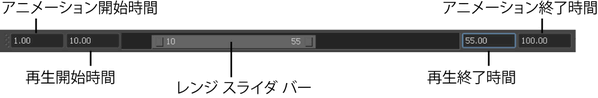 レンジ スライダは、タイム スライダ(Time Slider)に表示される再生レンジを制御します。