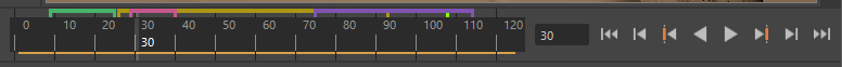 この青いストライプは、アニメーションのキャッシュされた再生(Cached Playback)ステータス ラインであり、既定のキャッシュされた再生(Cached Playback)ステータス ラインとなります。アニメーションのキャッシュされた再生(Cached Playback)ステータス ライン上のピンク色のストライプは、ダイナミクスの キャッシュされた再生(Cached Playback)ステータス ラインです(以下の「ダイナミクス」を参照してください)。