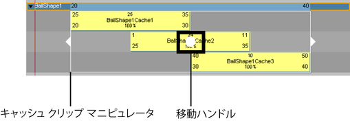 - 移動ハンドルを左右にドラッグして、選択したすべてのキャッシュ クリップを一度に移動します。