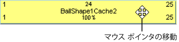 選択されているジオメトリ キャッシュ クリップが、時間上前または後ろに移動し、開始フレーム(Start Frame)の値が変更されます。