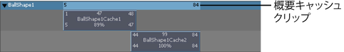 - Trax エディタ(Trax Editor)で、オブジェクトの概要キャッシュ クリップを左または右にドラッグします。