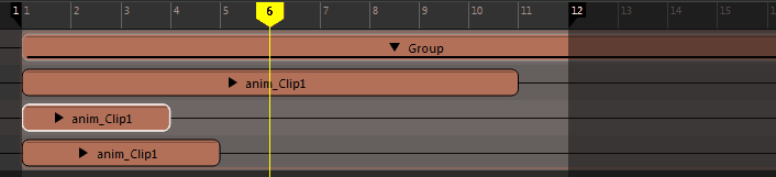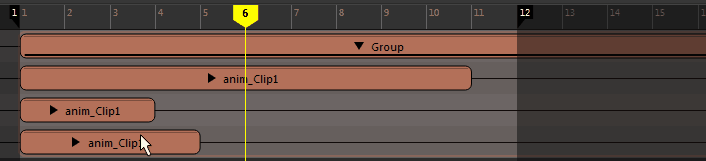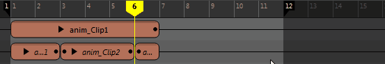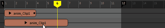 - シーンまたはアウトライナ(Outliner)で選択したアニメーション ソースを、選択したアニメーション トラックにクリップとして追加します。