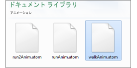 読み込み/書き出しオプションのアクセスと .atom ファイル フォーマットでのアニメーションの保存またはリロードには、ファイル > ATOM (File > ATOM)メニュー項目を使用します。