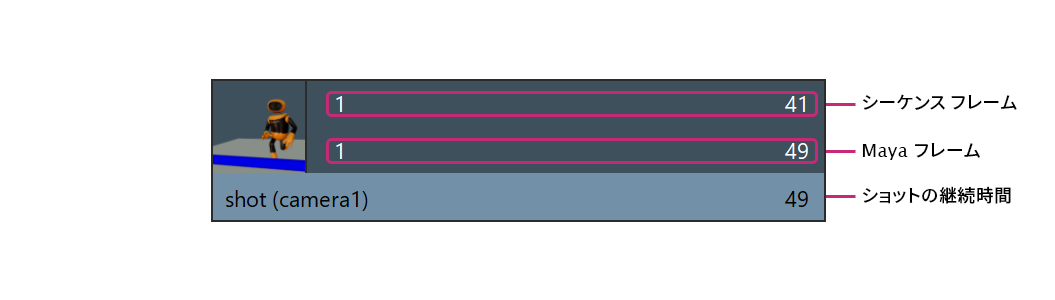 Sequencer Editor のショットは、特定のカメラがアクティブになるフレーム レンジを表します。ショットを使用することで、シーケンス内の各カメラのタイミングをコントロールおよび調整できます。