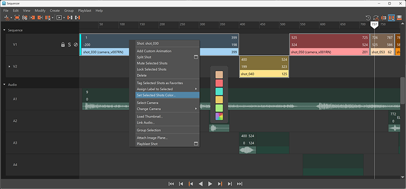 Sequencer Editor でショットの表示色をカスタマイズできます。