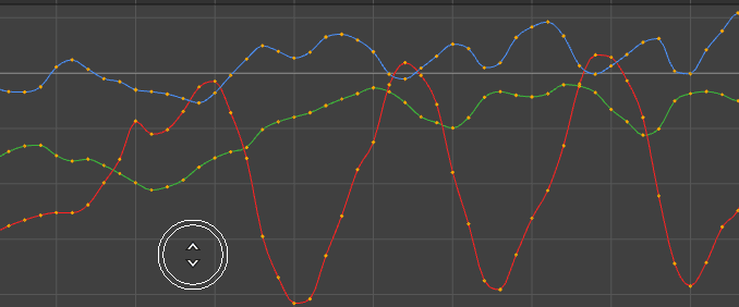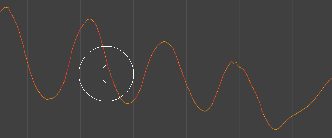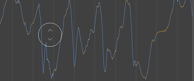 グラフ ビュー(Graph View)でドラッグしても、何も変更されません。これは、カーブ上でドラッグした場合も同様です。複数のカーブがブラシ半径内にある場合は、これらのすべてのカーブが同時に影響を受けます。