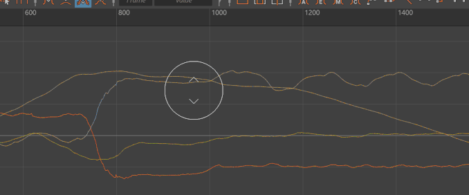 グラフ エディタ(Graph Editor)のスカルプト ツールを使用すると、ブラシスタイルのツールを使用して、カーブ セグメント上のキーを直感的に変更することができます。