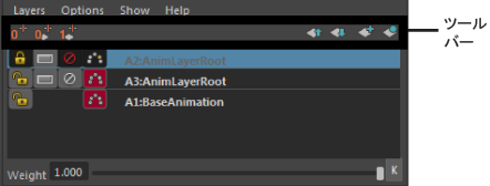 次の表は、アニメーション レイヤ エディタ(Animation Layer Editor)ツール バーにあるボタンについてまとめたものです。