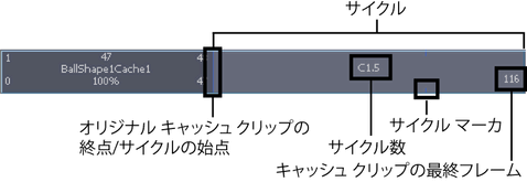 オリジナル キャッシュ クリップの終点、つまり最初のサイクルの始点には、小さな垂直線が表示されます。キャッシュ クリップの各サイクル シーケンスの終点には、小さなサイクル マーカーが表示されます。