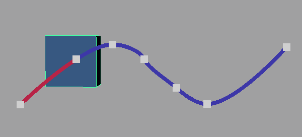 モーション軌跡に対してこのタイプの修正が行われるのは、固定タイム レンジを基準にして軌跡を作成した場合です。たとえば、開始時間(Start time)を 1、終了時間(End time)を 10 に設定するような場合です。フレーム 8 にキーが含まれる領域を 1 ~ 10 までの範囲でドラッグすると、フレーム 8 にあるモーション軌跡のキーが削除されます。