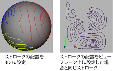 この設定はオブジェクトに対してペイントされたストロークだけに適用され、ビュー プレーンやパース ビューのプレーンにペイントされたストロークには効果がありません。この設定を使用すると、3D オブジェクトに対してペイントされたストロークからテクスチャを作成することができます( 3D オブジェクトにペイントしたストロークをテクスチャに変換するを参照)。次のいずれかを選択します。