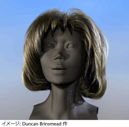 セルフシャドウは、ヘアを自然に見せるためには特に重要です。ペイント エフェクト(Paint Effects)のヘアを使用する場合、長いヘアにシャドウを付けるには標準的なペイント エフェクトと同じ問題が伴います。レイ トレースしたシャドウはサポートされないので、深度マップ シャドウを用いる必要があります。また、中間距離の使用(Use Mid Dist)はオフにしてください。中間距離の使用(Use Mid Dist)がオフの場合、一般的にバイアス(Bias)を調整する必要があります。バイアス(Bias)を大きくすると、より多くのライトがヘアを通過できるようになり、またサーフェス上にノイズとしてセルフ シャドウの格子状のアーティファクトが生じるのを抑えられます。nHair は非常に細い物体なので、シャドウ マップの解像度はかなり高めにする必要があります。しかし、フィルタ サイズ(Filter Size)を大きくするとシャドウがスムーズになり、ヘアに広がるライトの拡散のシミュレートに役立ちます。また、ヘアのシャドウのガタつきやエイリアシングを小さくします (ライトやシャドウに関するアトリビュートの詳細については、シャドウ アトリビュート(Shadow attributes)と Maya のシャドウを参照してください)。