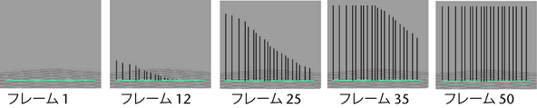 キーフレームの設定を行います。たとえば、木の成長をアニメートする場合、始めの 100 フレームは木を成長させないままにし、次の 100 フレームで成長させるようにアニメートすることができます。