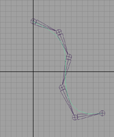 - を選択し、各ジョイントでクリックして CV を作成しながらジョイント上のカーブをなぞります。最後のジョイントの端で Enter を押します。